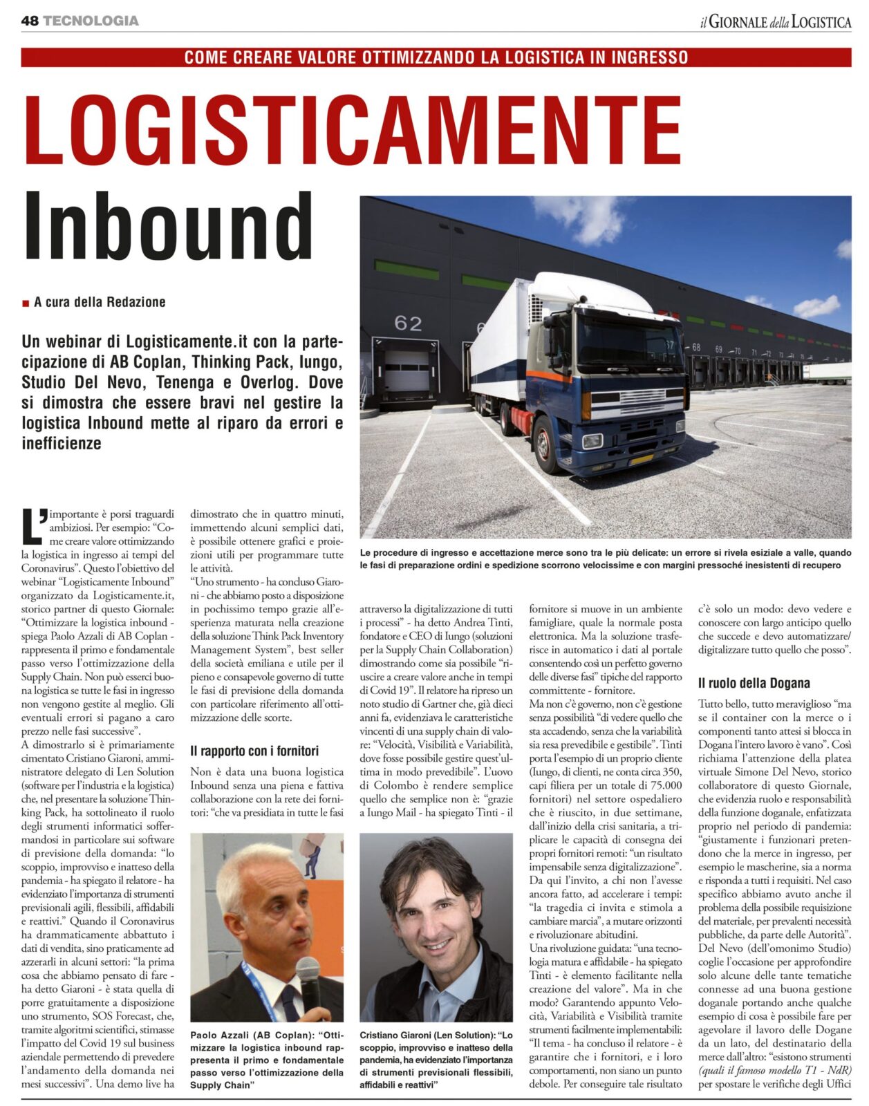 The successful webinar organized by Logisticamente.it, “Logistically Inbound”, in which the CEO of LEN Solution, Cristiano Giaroni, served as an exceptional speaker, was reported by one of the most important magazines in the sector, Il giornale della logistica, for the interesting strategic ideas that he was able to convey to the participants at a very… Continua a Leggere Say about us: the webinar “Logistically Inbound” on the Logistica Journal